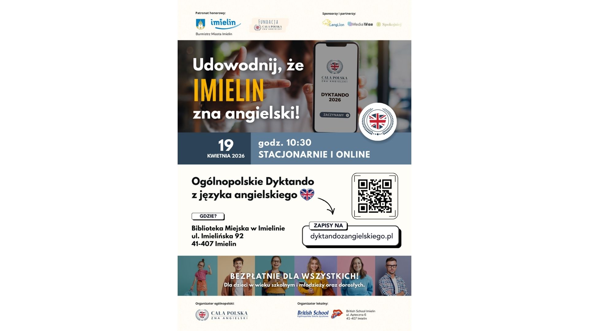 Wydarzenie współorganizuje British School pod Honorowym Patronatem Burmistrza Miasta Imielin.